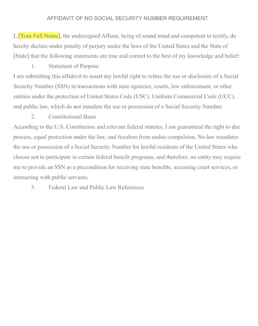 • Sound Affidavit: References relevant laws including the Privacy Act and 42 U.S.C. 408.